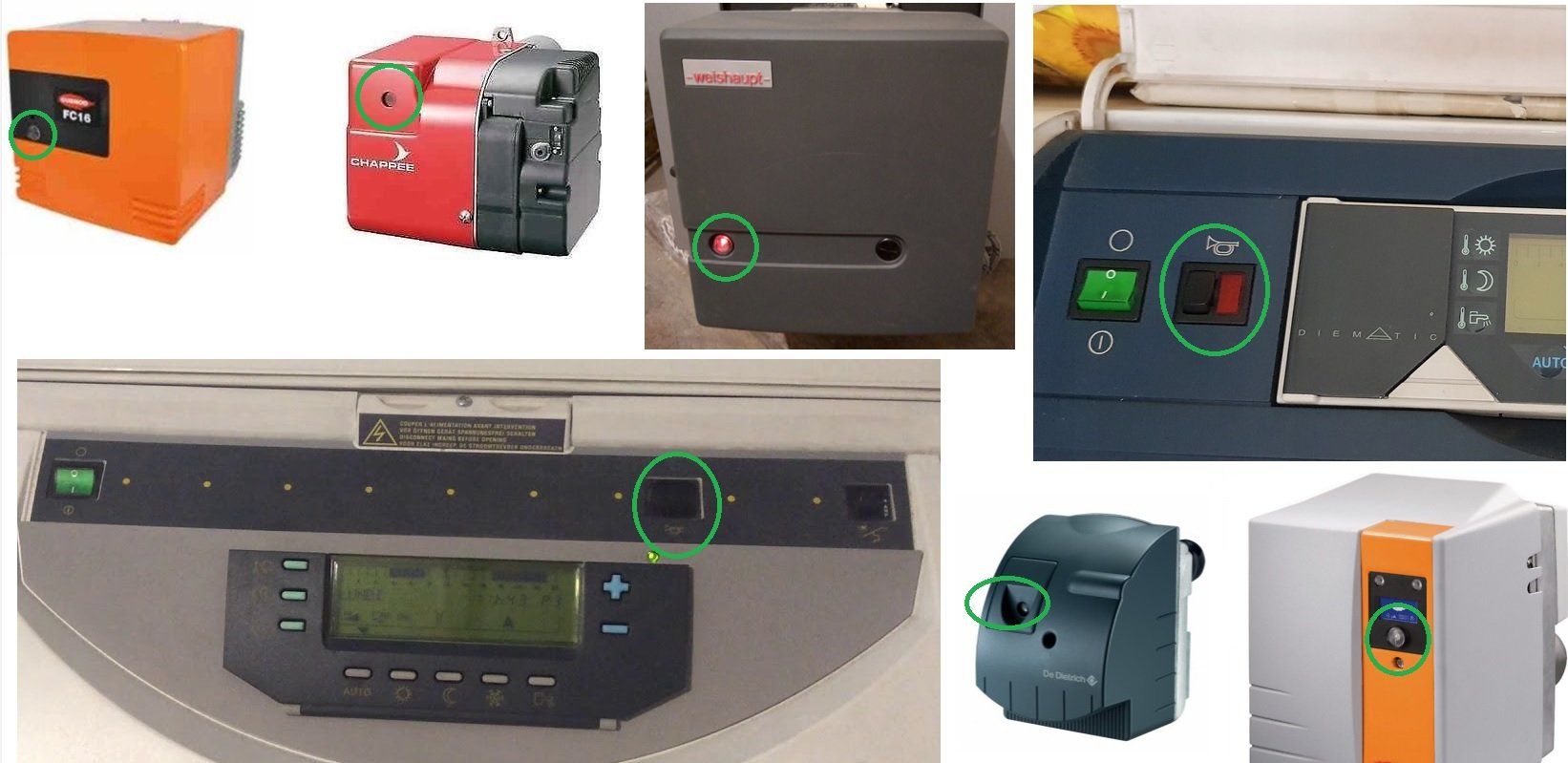 i vous avez vérifié les précédents points vous pouvez essayer de relancer le brûleur (maximum 4 fois) avec le buton de réarment (voir photo) il faut attendre environ 1 minute entre 2 réarmements. Si cela ne fonctionne pas vous pouvez aussi essayer de couper le courant 5 minutes puis relancer.